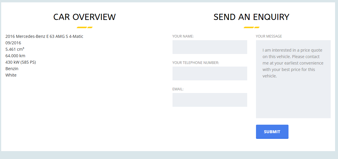 After finding the car you’ve always dreamed of, turn the key and fill in the required fields with your personal details.