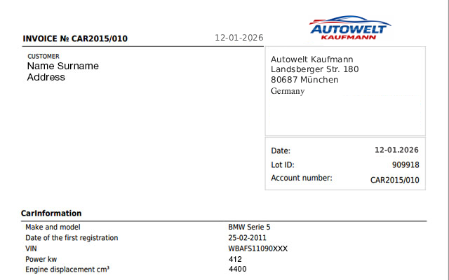 In case registration certificate was not issued at the time of issuance of the car, then you need to load a document proving the delivery of the vehicle to the destination. Then Autowelt Kaufmann sends you the car registration certificate by mail.